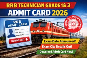 अपने इस आर्टिकल मे हम आप सभी अभ्यर्थियों का हार्दिक स्वागत करना चाहते है जिन्होंने आरआरबी टेक्निशियन ग्रेड 1 एंव ग्रेड 3 भर्ती 2025 मे अप्लाई किया है और अपने – अपने एडमिट कार्ड के साथ ही साथ एग्जाम सिटी स्लीप को चेक व डाउनलोड करना चाहते है उन्हें हम, इस आर्टिकल की मदद से विस्तार से RRB Technician Grade 1 & 3 Admit Card 2026 को लेकर तैयार रिपोर्ट की जानाकरी प्रदान करेगें जिसके लिए आपको अन्त तक इस आर्टिकल को पढ़ना होगा।